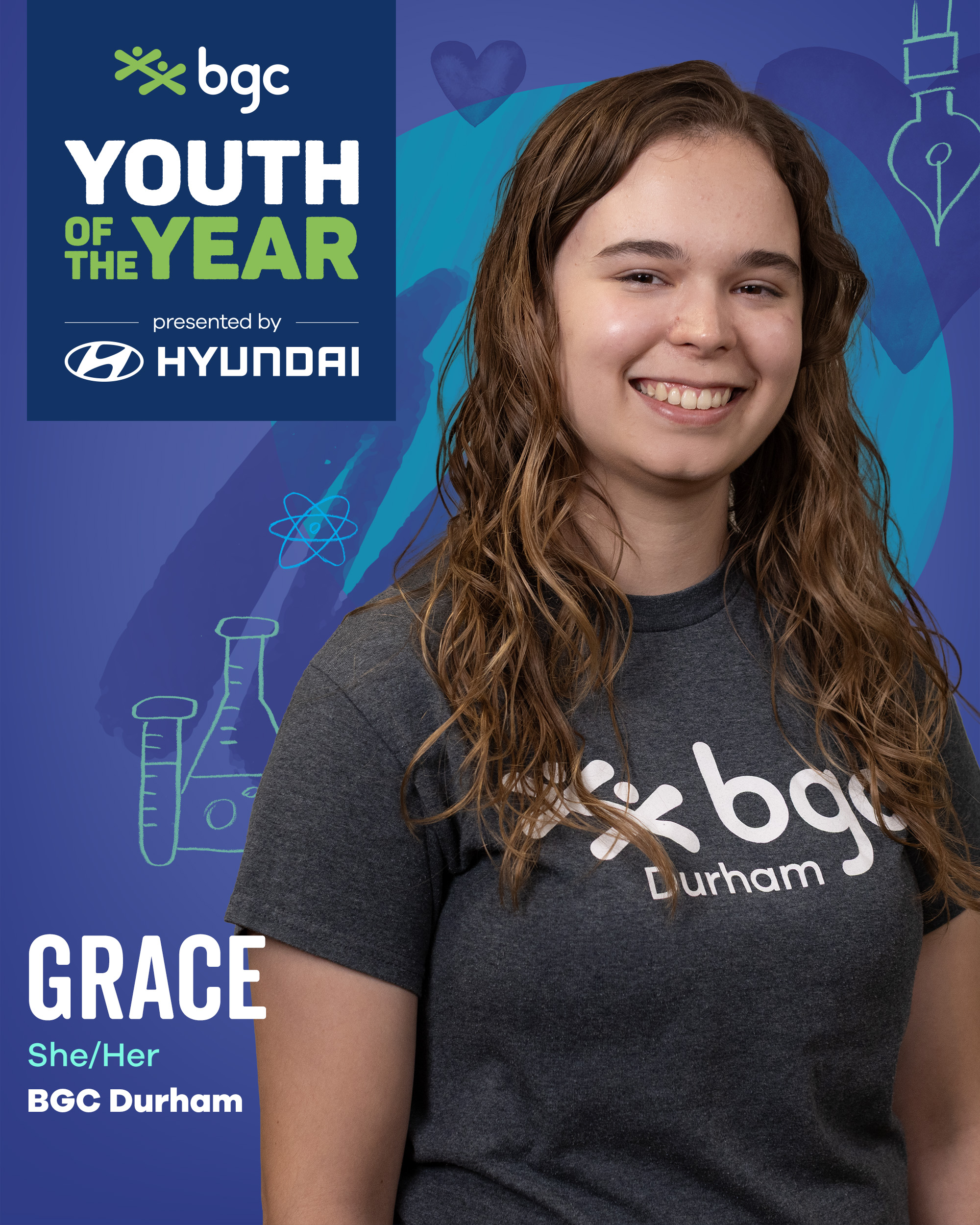 Grace has been involved with BGC Durham for seven years as a Club member, volunteer, and Club staff. Throughout her Club journey, she has grown and developed skills such as leadership, public speaking, and communication.