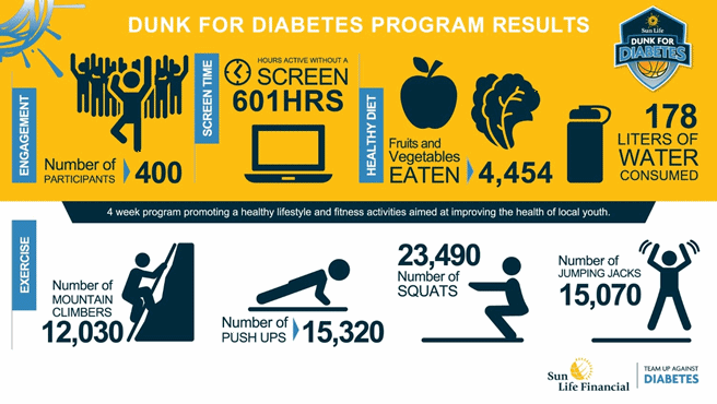 “On behalf of the Toronto Raptors, congratulations to all the participants of the Sun Life Dunk for Diabetes program,” said Dwane Casey, Head Coach, Toronto Raptors. “After six short weeks, hundreds of youth have accomplished so much towards living healthy, active lifestyles and the Toronto Raptors are proud to have been a part of their achievements. We look forward to continuing our work with Sun Life to expand the program across the country and positively impact the lives of more Canadian youth.”