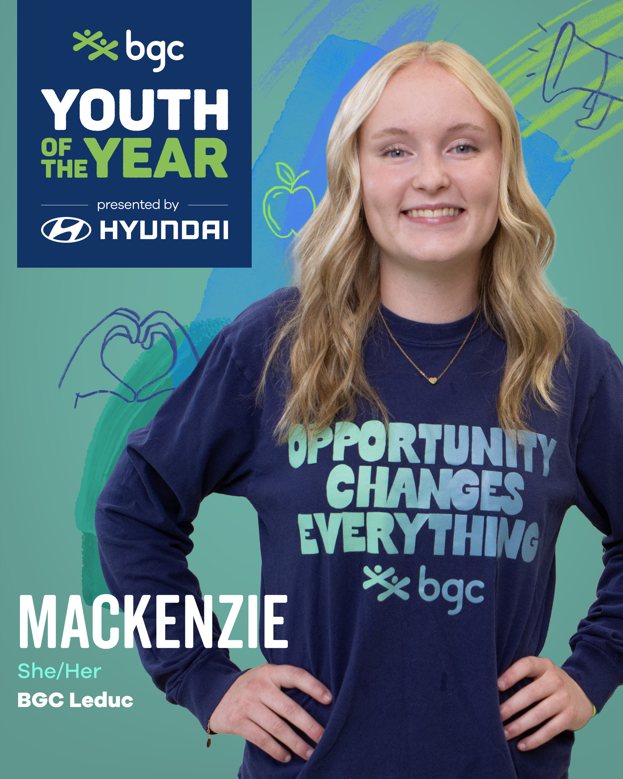 From Club member to Club staff, Mackenzie has been involved with BGC Leduc in Alberta for four years. She credits her BGC Club with having a deep impact on her growth in emotional resilience, confidence, and leadership.
